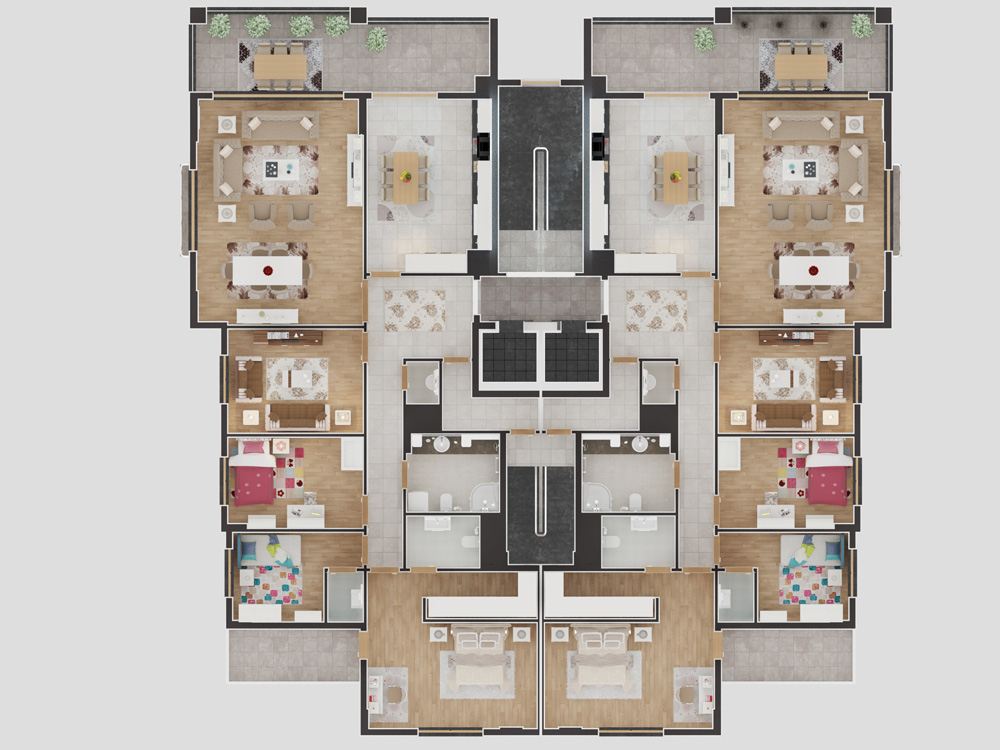 - Daireler 3+1 brüt 178 m² ve 4+1 brüt 215 m²